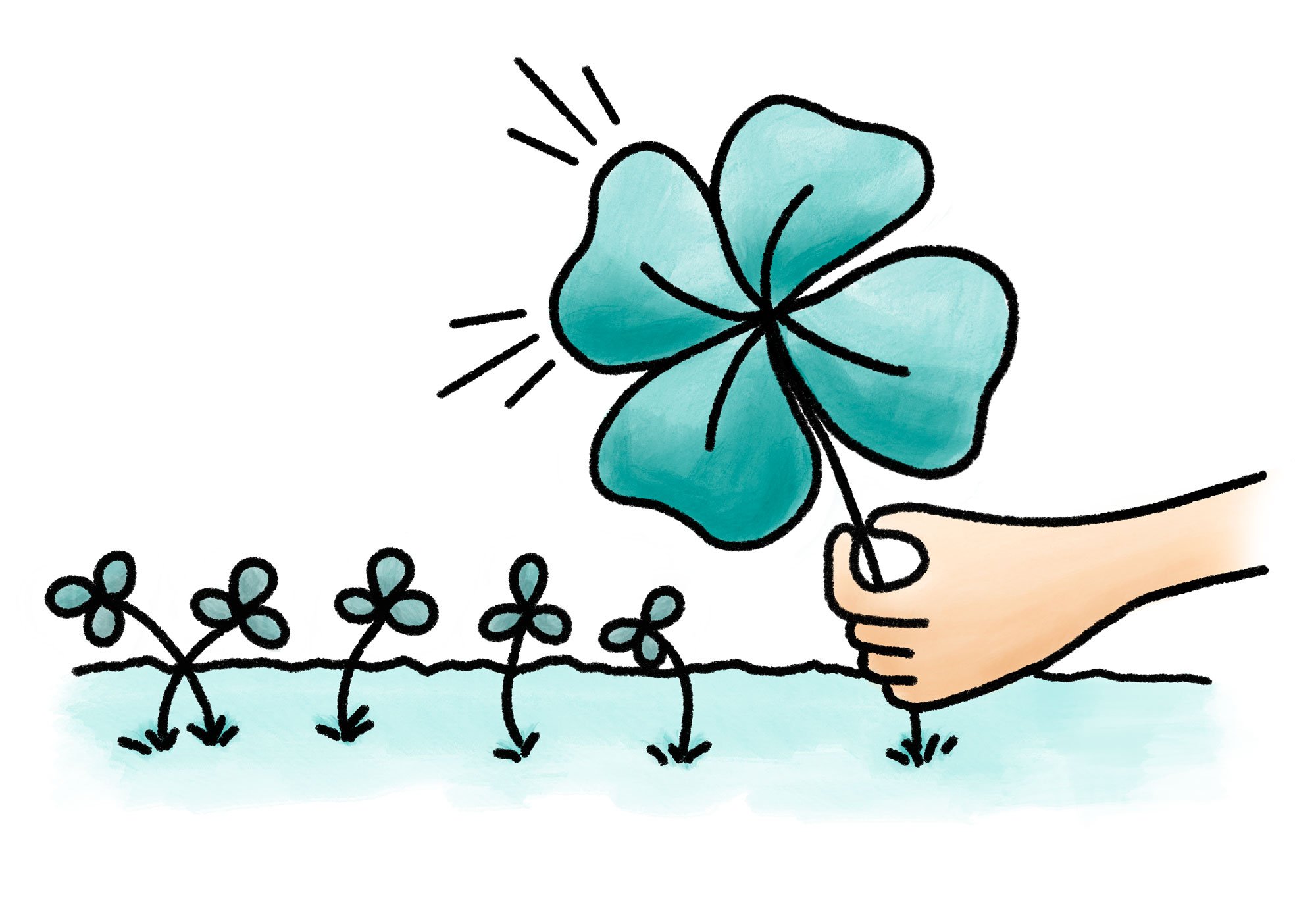 A single leaf is the only difference between a three-leaf and four-leaf clover. One is picked up and the other is passed over.